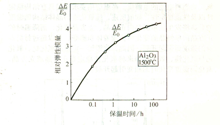 在噴涂狀態(tài)下,涂層內(nèi)的扁平粒子間的結(jié)合率只有15%~32%,當在高溫下長時間熱處理時,涂層將發(fā)生燒結(jié)現(xiàn)象,從而使涂層的性能發(fā)生變化。在1500PC下熱處理時,隨保溫時間的增加,涂層的相對彈性模量增加,如圖13所示。因此,在高溫下使用時,需要考慮涂層的結(jié)構(gòu)與性能的穩(wěn)定性。