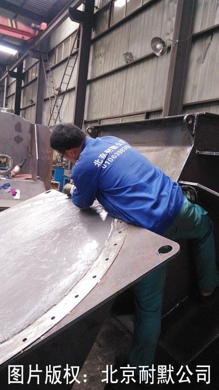 ■ 涂敷:將混合好的材料按十字交叉涂抹兩遍于待修部位,膠層以0.2-0.5mm為宜。膠層要壓實(shí),使之與基材充分浸潤(rùn)。大面積防護(hù)可以根據(jù)情況刷2~3兩遍.